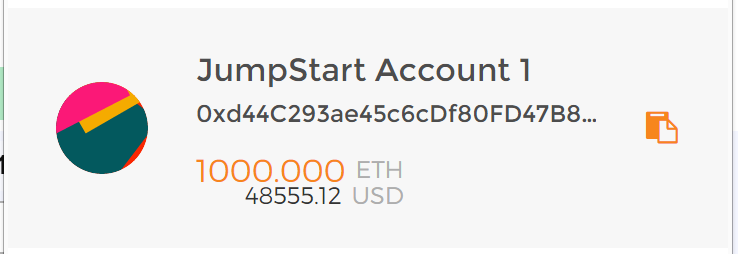 Via the clipboard icon in the MetaMask wallet, copy the address of the Ethereum account